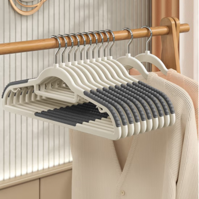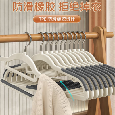 法洁诺(FAJIENUO) 衣架无痕防滑家用挂衣防肩角晾衣架学生宿舍衣服架子衣柜收纳神器 防滑无痕双位款 整理师同款【静谧灰】 10个