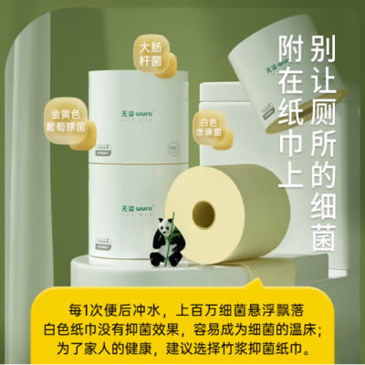 无染(wuro)无芯卷纸 卫生纸4层加厚70g*40卷竹浆纸 竹纤维本色纸巾厕纸手纸 整箱
