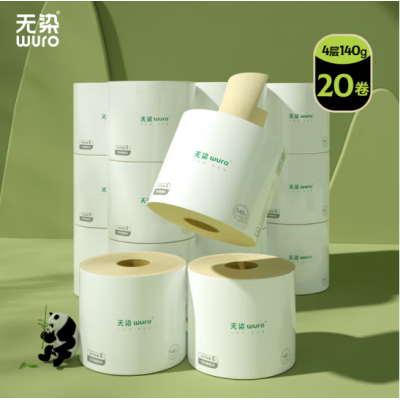 无染(wuro)卷纸 卫生纸纸巾有芯卷纸4层加厚140g*20卷家用厕纸竹浆卷筒纸整箱